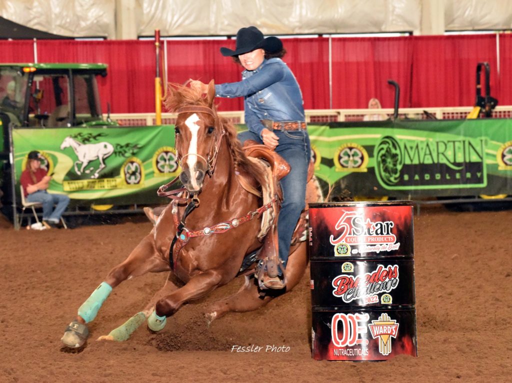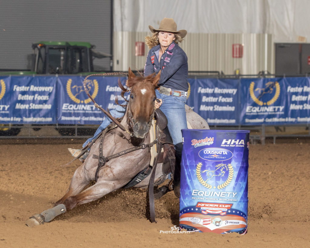 Hailey Kinsel changed headgear on her $2 million winner DM Sissy Hayday (“Sister”) to net a $24,000 San Antonio Championship.