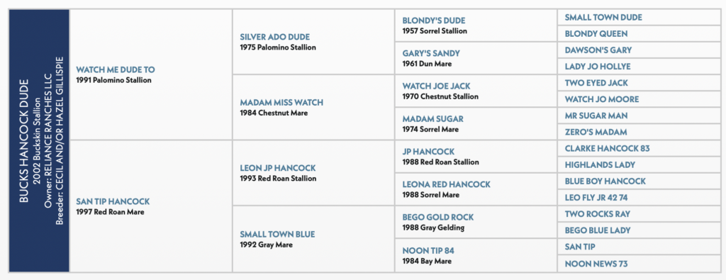 Bucks Hancock Dude’s reputation as a sire and performer is as impressive as the dappled buckskin himself.