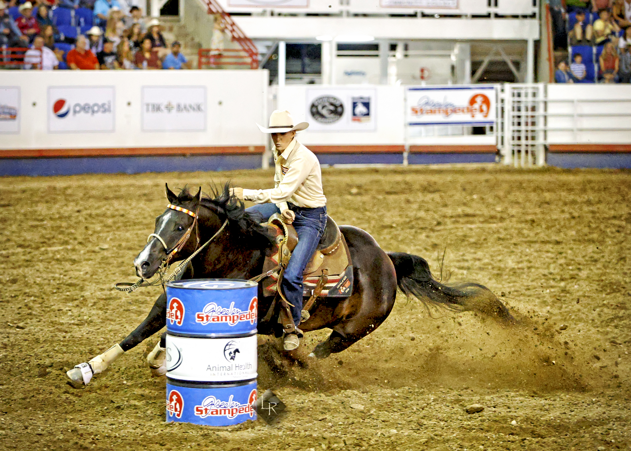 The tremendous size of Island Grove Park’s horseshoe shaped area leaves the barrels sitting far, far away from any fence, so some horses have trouble finding the corners.